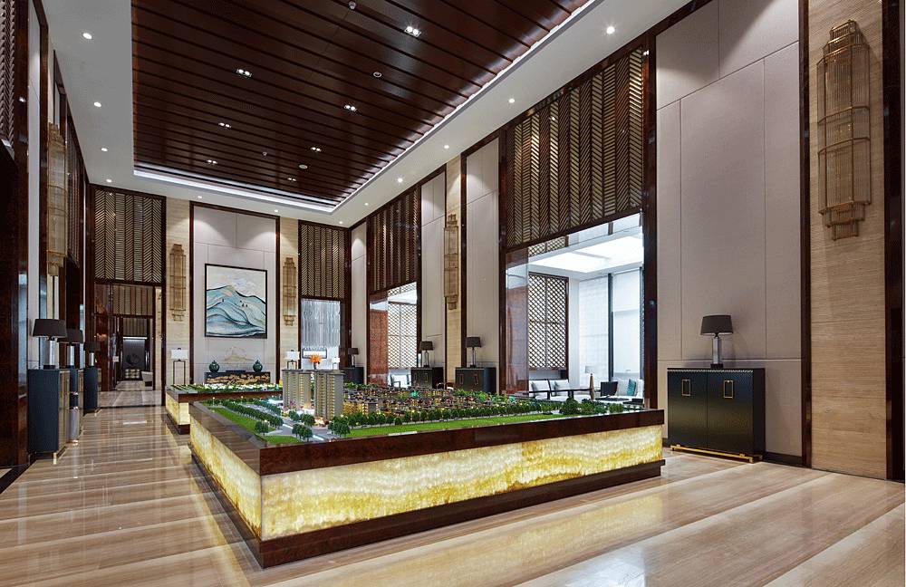 沙盤區(qū)采用簡(jiǎn)單、大氣的設(shè)計(jì)手法,沒(méi)有濃墨重彩的奢華場(chǎng)景,更多的是將歷史古都的韻味帶到細(xì)節(jié)中,如格柵、窗欞、黛青色擺件、意境掛畫等東方元素都透露著古韻,并融入大理石、玻璃、燈帶等現(xiàn)代材料,在營(yíng)造意境的同時(shí)兼顧場(chǎng)所的使用功能。