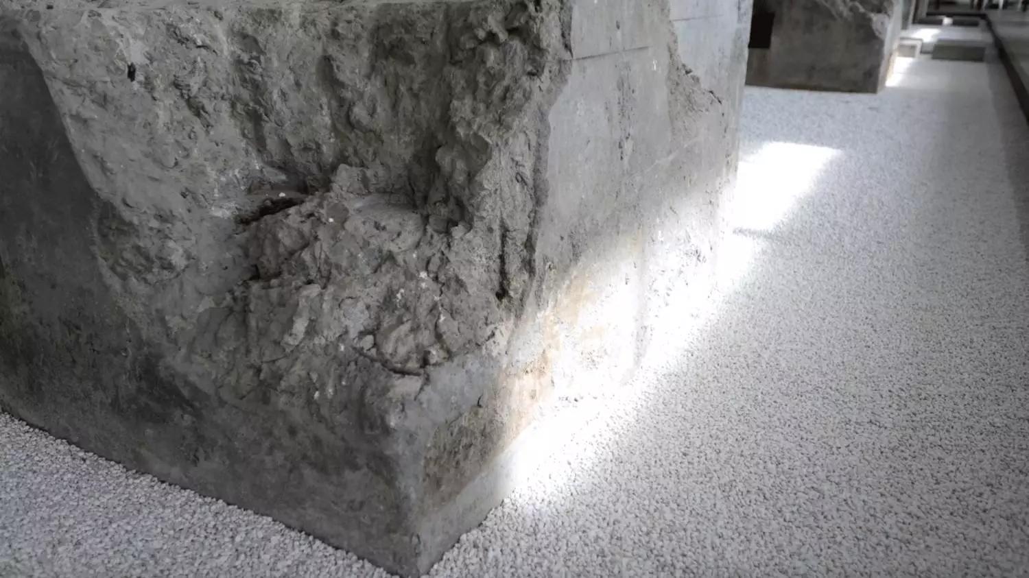 天窗的陽光投射在舊石墩上,光隨時間緩慢流淌,從晨曦到夕陽日復一日的撫摸石墩的肌理。人們彷彿可以感知到這片土地的過往,一天一年一個世紀,或者更遠。