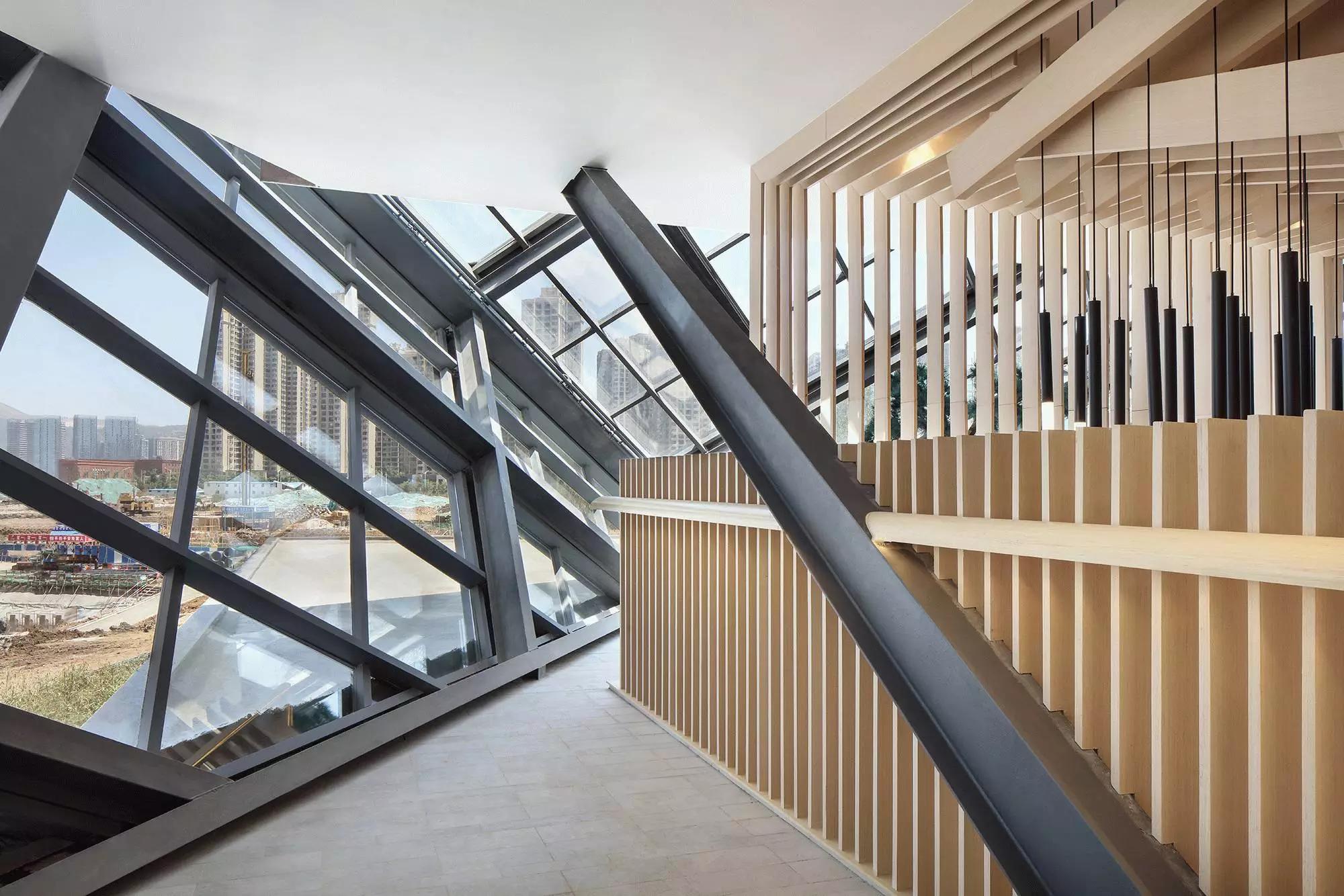項(xiàng)目原屬昆明聯(lián)想科技城,后由融創(chuàng)地產(chǎn)接盤(pán),他們希望將該建筑打造成為集辦公、商業(yè)、展示等多元化為一體的空間,并使其成為昆明新的城市地標(biāo)建筑。接手本案的主創(chuàng)設(shè)計(jì)師是默存設(shè)計(jì)的季青濤,作為具有建筑師背景的主創(chuàng)設(shè)計(jì)師,從建筑空間的思維從事空間設(shè)計(jì)便成為一種必然。在原有“盒子”空間的內(nèi)部,設(shè)計(jì)師以木結(jié)構(gòu)對(duì)空間進(jìn)行了重組和分割。