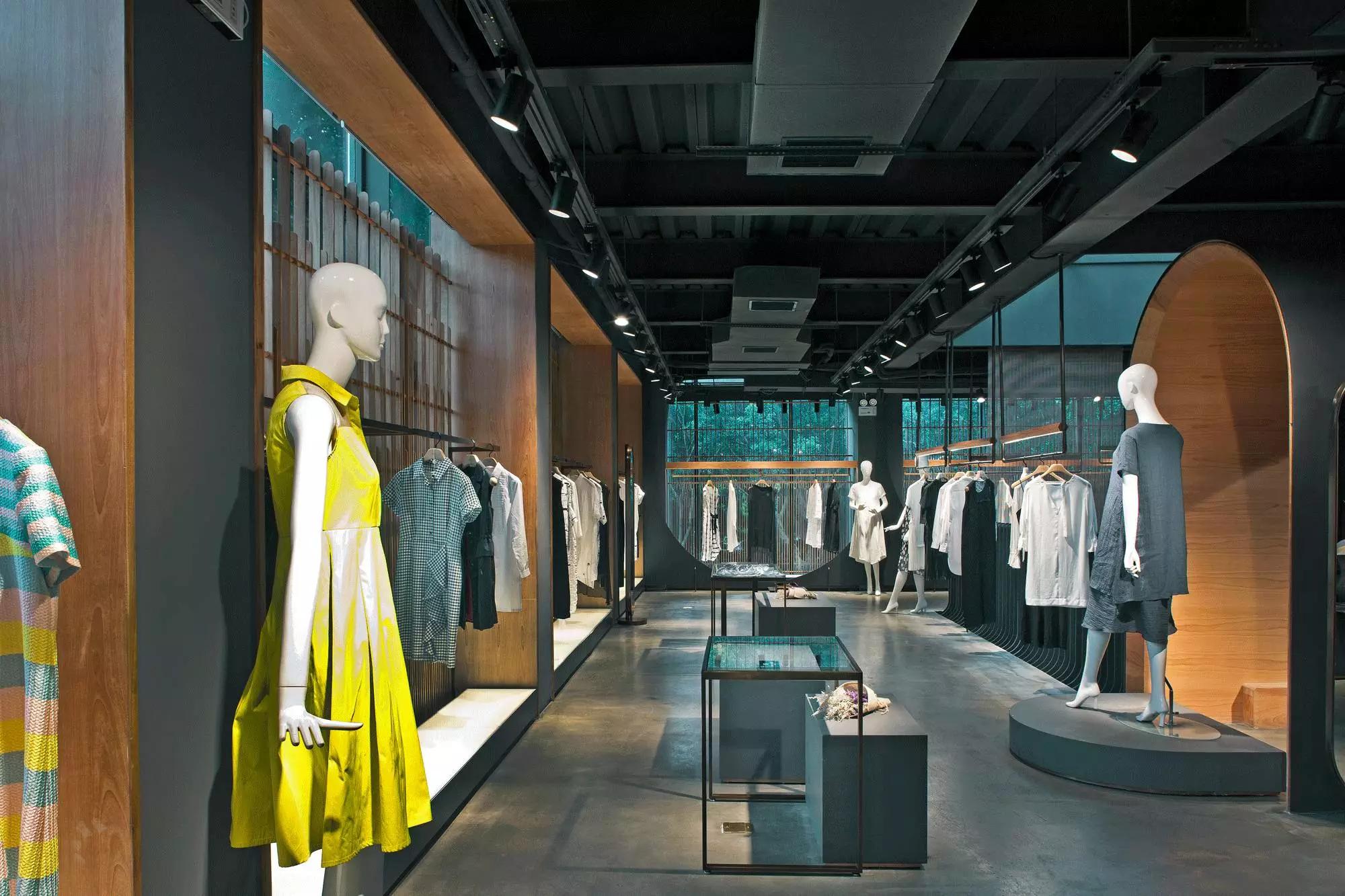 MINZE-STYLE品牌集合店位于中心公園旁邊,基地以前是一個封閉的建筑。設(shè)計開始結(jié)合現(xiàn)場周邊的綠色環(huán)境進行融合,設(shè)想在綠色中將建筑消失成為一個出發(fā)點。我們在基本的層面,表達建筑使用的材料,基地及物理現(xiàn)實世界的存在狀態(tài),什么是墻,什么是表皮,什么是透明,這些問題會立即影響觀察者與使用者的感官與感知能力。我們力求世界的物質(zhì)性與感知的多元性,物質(zhì)性必須突顯,才能展現(xiàn)空間藝術(shù)的特質(zhì)。