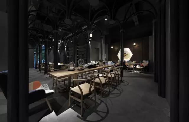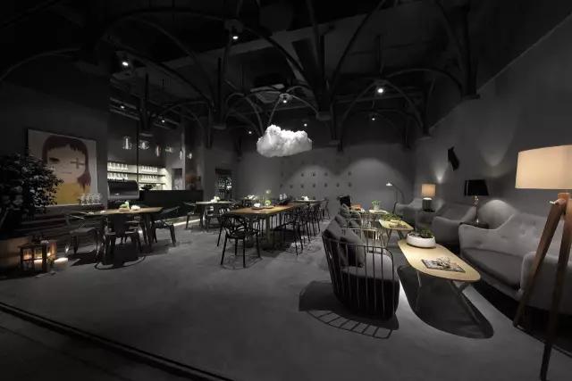 考慮到經(jīng)濟性、便捷的施工工藝與周期,清水混泥土成為了主要的材質(zhì)。由哥特式建筑引發(fā)的圓管結構設計,在空間中重組、穿插、演繹了一場哥特式感覺的舞臺劇,其高潮莫過于咖啡區(qū)的一朵白色漂浮的云。設計最大限度的融入了環(huán)保概念,不僅所有的材料都是可以回收利用的,而且定制安裝的方法既減少了現(xiàn)場的污染,也節(jié)省了施工周期。設計團隊選擇了很多具有趣味性的當代藝術作品來為空間注入時尚而放松的氣質(zhì),輔以層次豐富的燈光效果,將空間打造成了一個優(yōu)雅而又風趣的雅皮士的感覺。