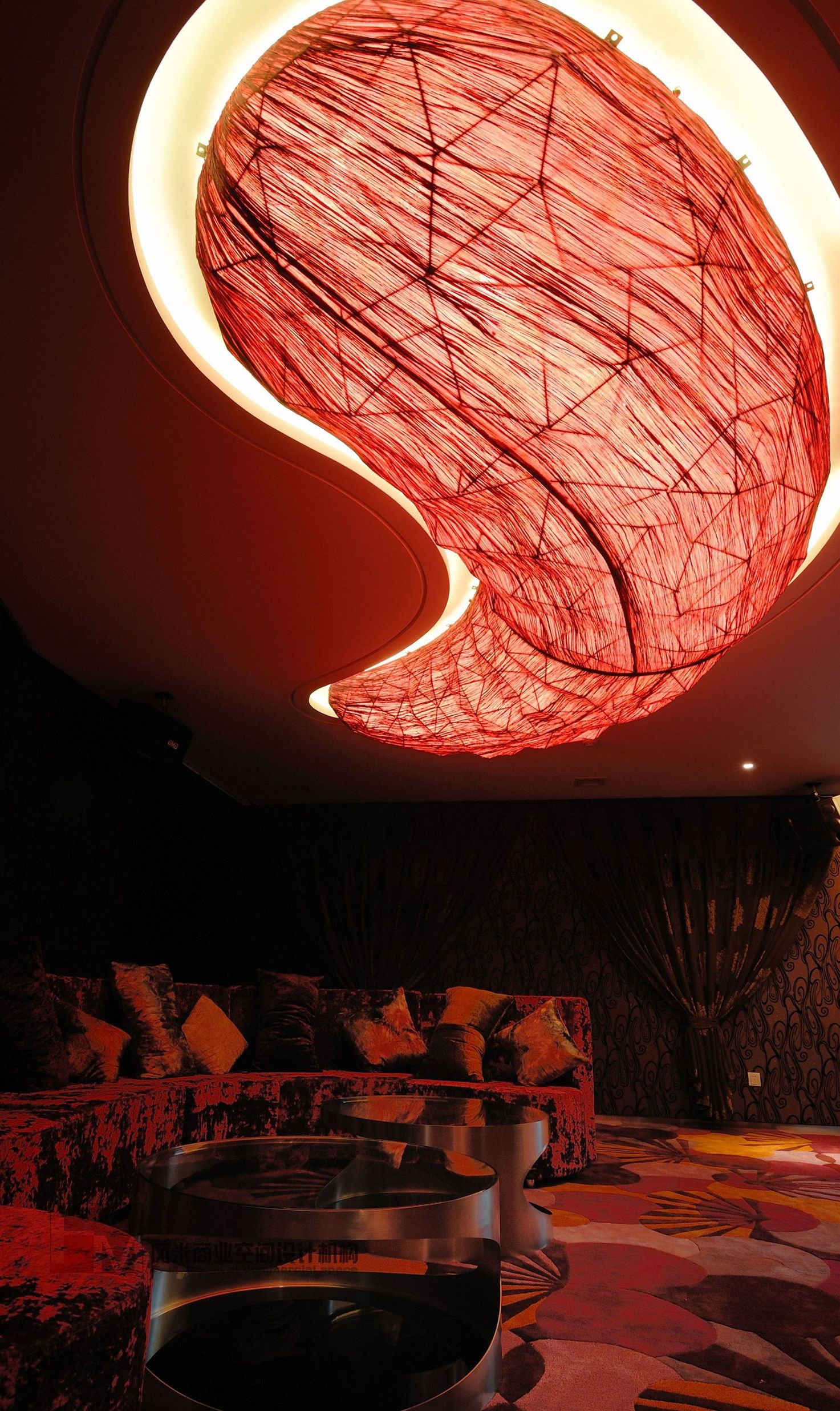 現(xiàn)代人的價(jià)值觀是一個在顛覆中發(fā)展的時(shí)期,人們的觀念在顛覆,消費(fèi)的觀念亦在成熟中顛覆。所以在這次設(shè)計(jì)中我們要通過另一種美學(xué)設(shè)計(jì)手法再一次顛覆人們的審美價(jià)值觀。在設(shè)計(jì)中空間內(nèi)以超出常規(guī)的比例關(guān)系的形態(tài)來表露意識形態(tài)。在材料排布上以非慣性的處理手法來獲得人們對新形餐飲空間的認(rèn)知,在色彩運(yùn)用上以單體空間的色相統(tǒng)一來刺激人們對空間的色彩印象,在家具的造配上追求戲劇化的高度,奢華夸張的概念。使空間在整體上達(dá)到一種戲劇化的舞臺效果,讓人們游走其中產(chǎn)生一種非常規(guī)概念的心理感受,從而感受到空間的美感。